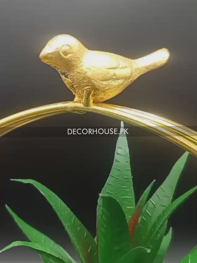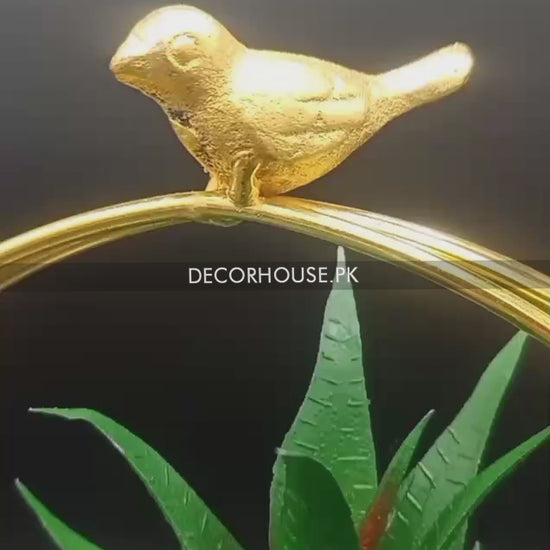 This metal geometric frame is a stylish addition to any home decor. The intricate design features a bird and plant, adding a touch of nature to your space. Its durable metal construction ensures long-lasting quality. Elevate your interior with this unique and elegant piece.